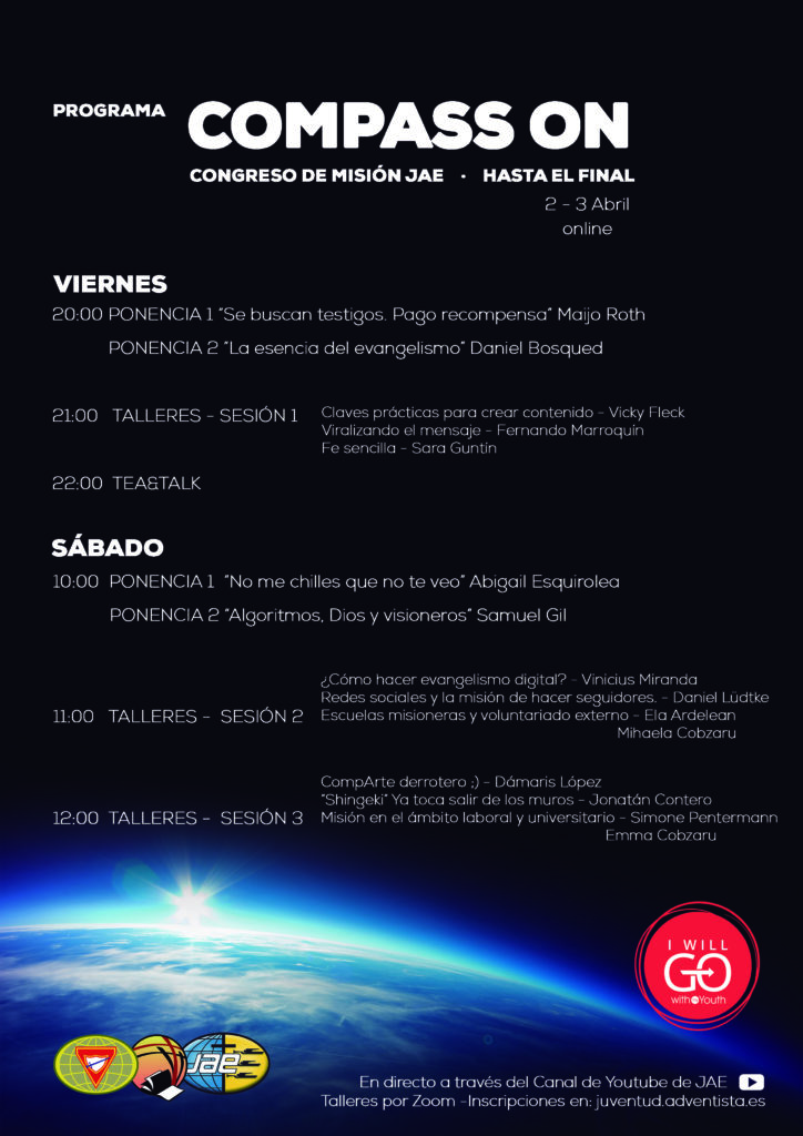 Encontrarás toda la información sobre el programa en: https://juventud.adventista.es/noticias/congreso-de-mision-jae-2021/