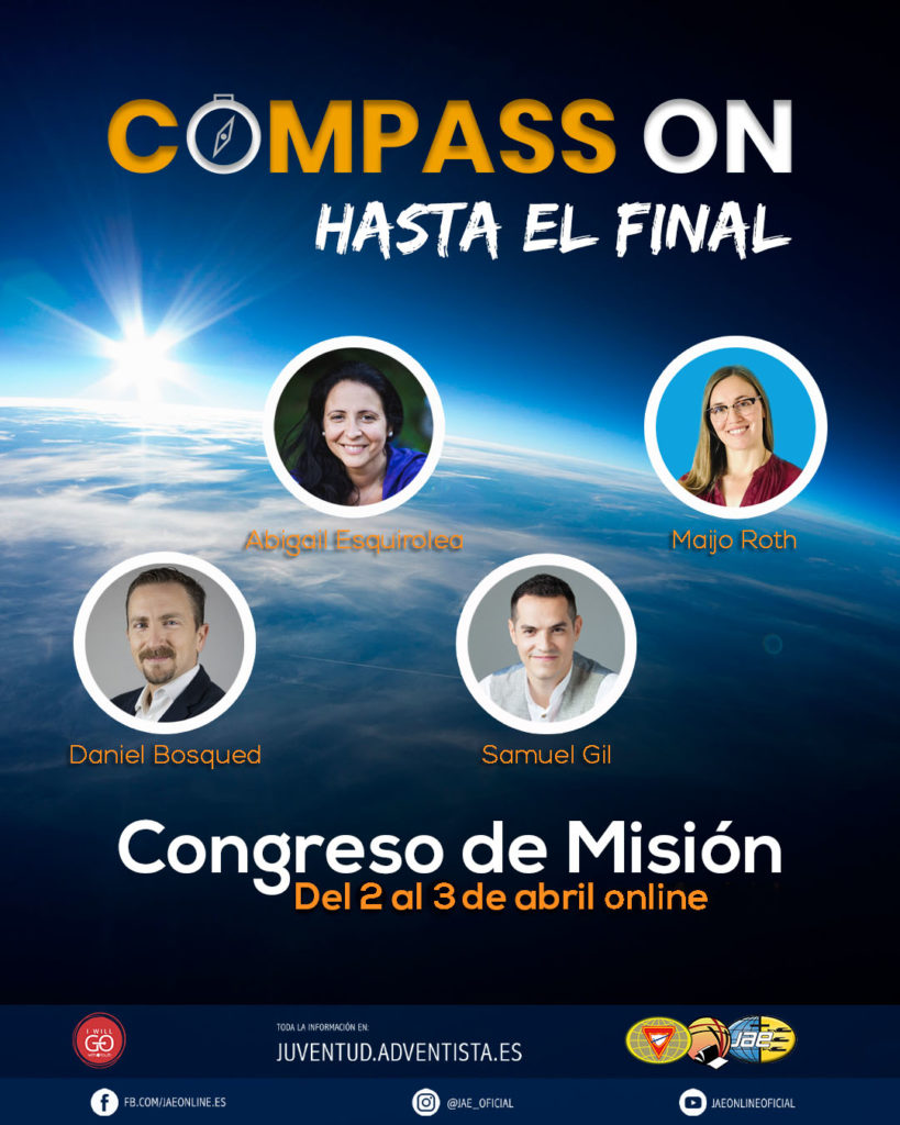 ¡Tenemos una noticia excelente para ti!Del 2 al 3 de Abril tendrá lugar el Congreso de Misión de la Juventud Adventista de España “Compass ON” con la temática “Hasta el final”.